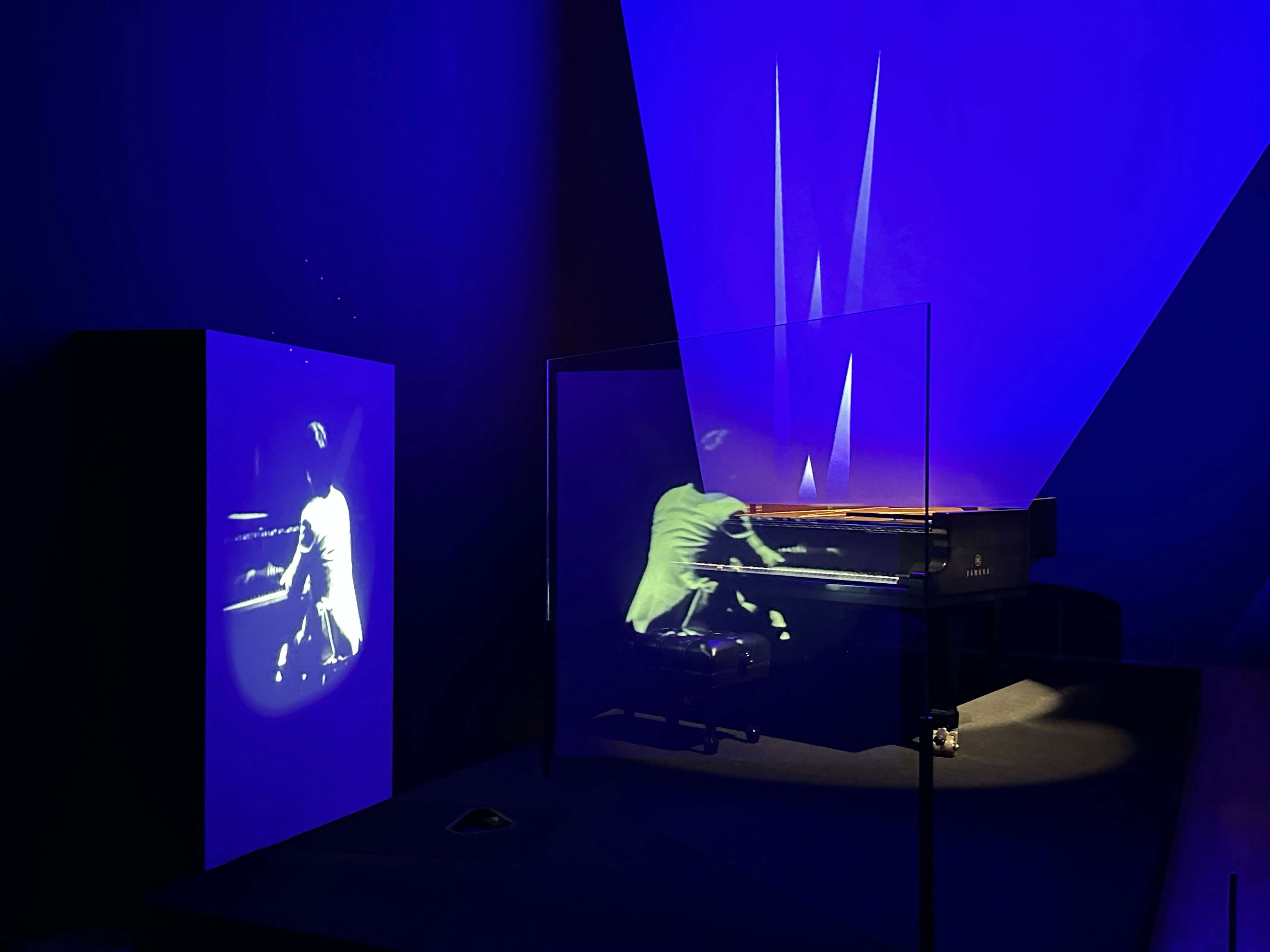 展示されているピアノに、坂本龍一さんの映像が組み合わされ、まるで坂本龍一さんがその場に現れてピアノを弾いているかのような作品でした。