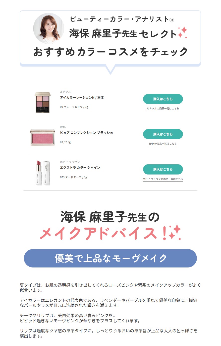 正しいパーソナルカラーを知って、ご自身をより美しくみせてくれるお洋服やコスメをゲットしてくださいね。