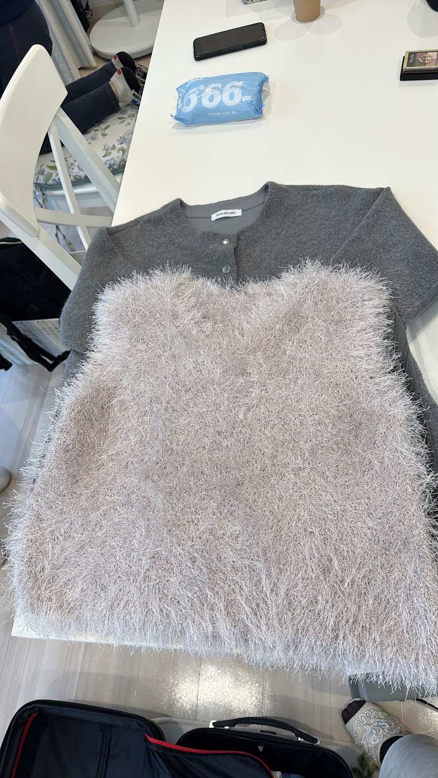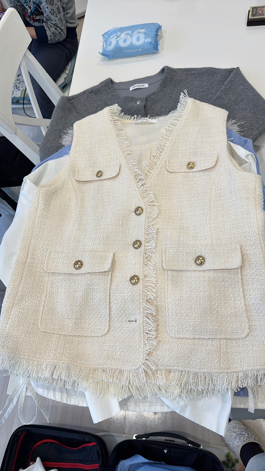 そして、こちらのシルバーグレーのふわふわのジレも可愛い♡(お買い物に行ったのは雪がふるくらい寒い時期だったので)