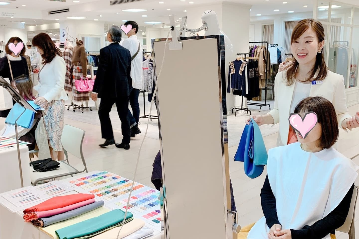 百貨店や商業施設、アパレル、宝飾、化粧品メーカーなどが行う販促イベント等で講師としてパーソナルカラー診断を行います。