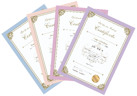 - *10タイプ12分類のパーソナルカラー診断(10Type Color Analysis by 4element®)(特許庁 商標登録第6546873号)のスキルを身に着けた方に授与されます。