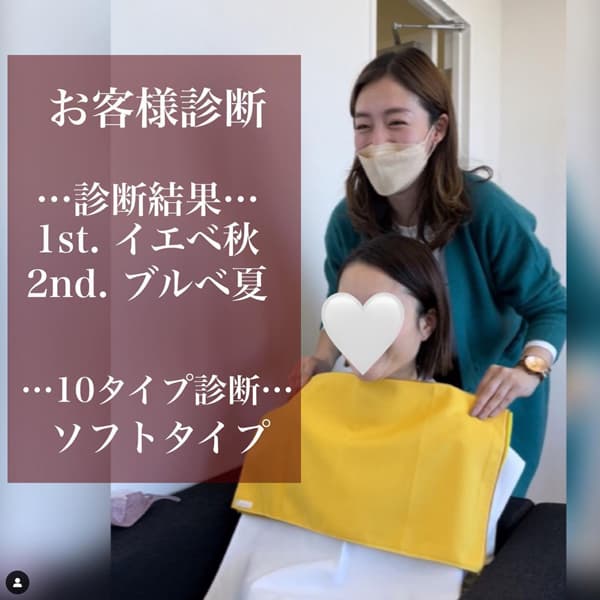 現在パーソナルカラーアナリストとして都内サロンでの活動をスタートしています。インスタグラマーさんの診断や、商業施設でのパーソナルカラー診断イベント、法人の社員研修などにも携わっています。