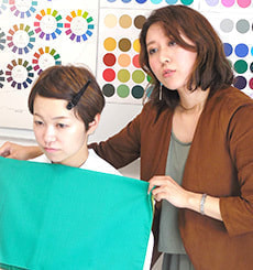 数あるスクールの中でサロン・ド・ルミエールを選択したのは、授業見学をさせて頂いたことがとても決め手となりました。 授業はとても実践的で、色の属性でモデルさんに似合う色を明確に判断していくところ、少人数制なので一人一人先生がみて下さりご指導頂けるところが他のスクールにはないと思いました。