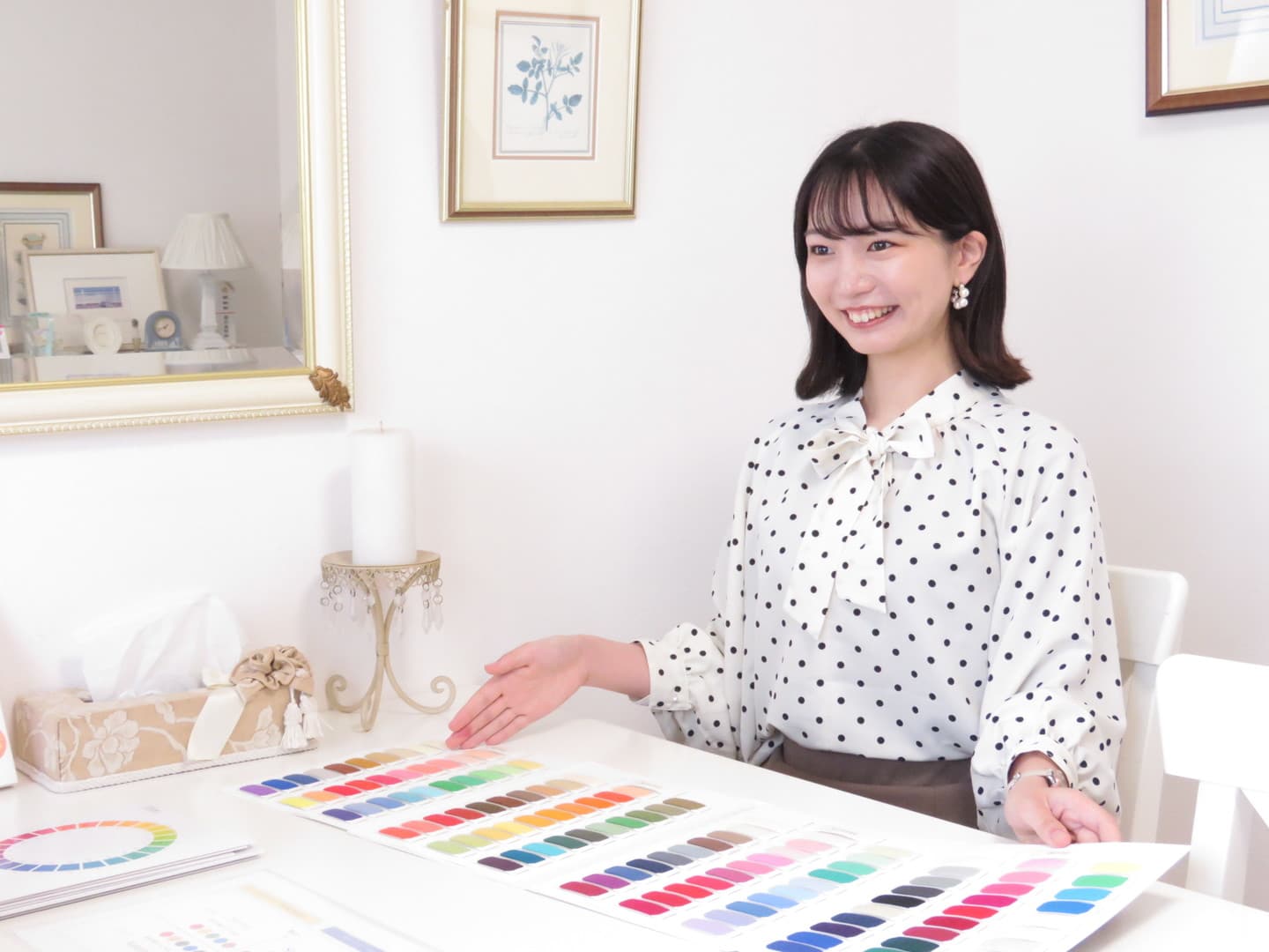 実際に診断をしてもらうと、似合う色はもちろん、似合うヘアカラーやアクセサリーカラー、メイクアップカラーまでも知ることができました。
